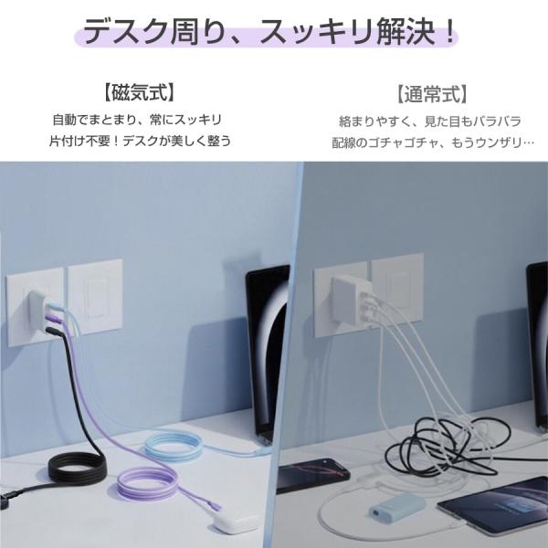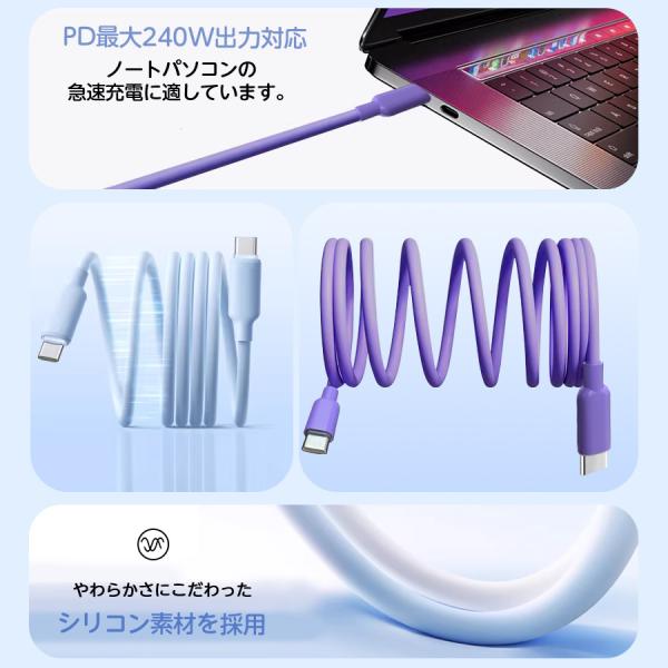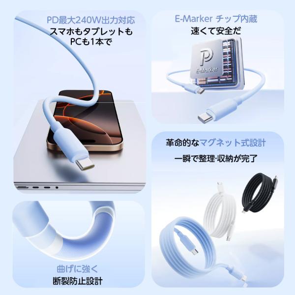 iPhone 充電ケーブル type-c to type-c ケーブル 最大240W 急速充電器 磁気収納 絡まない タイプc シリコンケーブル android iPhone17 iPhone16 iPhone15