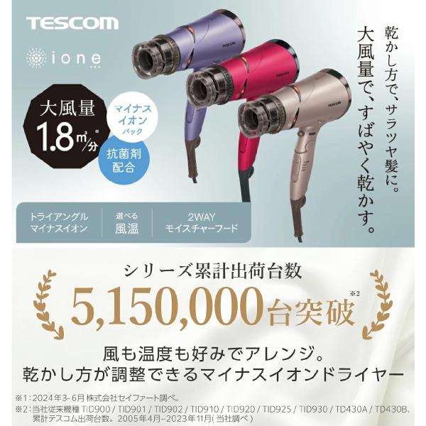 テスコム ドライヤー 速乾 大風量 マイナスイオン TD430B-N/DE 公式店 日本メーカー