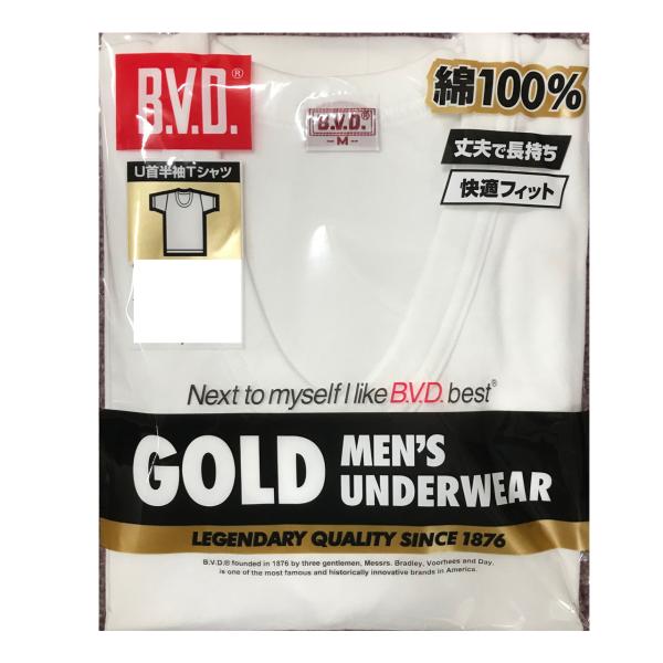 BVD GOLD U首半袖シャツ 2枚セット メンズ 肌着 インナー 男性 下着 半袖 U首 インナーシャツ 綿100% ゴールド G014 M-L