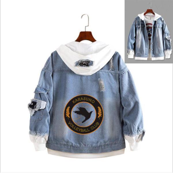 ハイキュー!! Haikyuu!! 烏野高校 排球クラブ ジャージ 長袖パーカー コスプレ衣装 春秋 男女 長袖スウェット 偽2つ デニムカジュアルコート