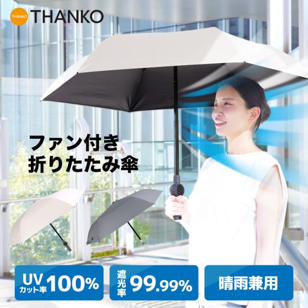 日傘 ファン付き 送風 折りたたみ 晴雨兼用 軽量 UVカット100% 遮光率99.99%以上 UPF50+ 充電式 ファンブレラPOLE PLUS TKFP26SJU TKFP26SGY