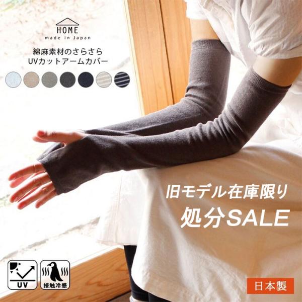 アームカバー 商品入れ替え 処分セール UVカット 日本製 おしゃれ かわいい レディース 腕カバー 日焼け 紫外線 対策 指穴 コットン リネン さらさら 冷感 127