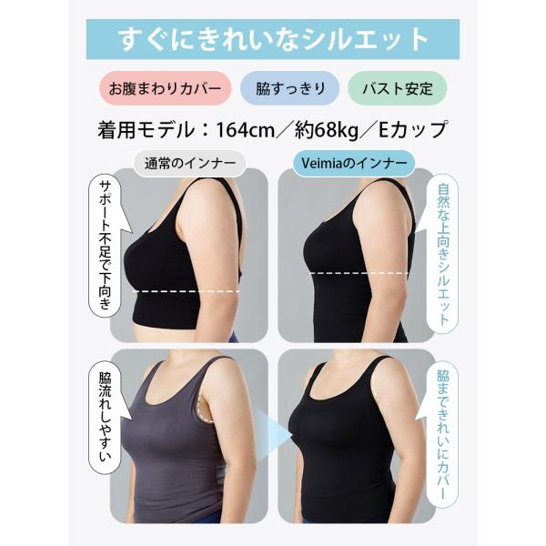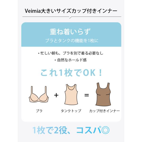 VEIMIA タンクトップ レディース シームレス カップ付き 脇すっきり 肩紐調節 ブラトップ キャミソール インナー 肌着 ブラキャミ トップス オールインワン 下着