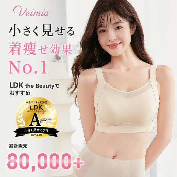 VEIMIA 小さく見せるブラ 胸をすっぽり包み込み シームレス 胸が小さく見せるブラ ノーワイヤブラ 脇高設計 ホールド力 揺れ軽減 安定感 着痩せブラ