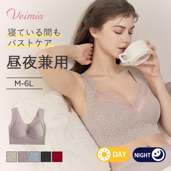 VEIMIA ナイトブラ 24H使える ノンワイヤーブラ ヒョウ柄 ホックなし 脇高設計 リラックス 締め付け感ない 柔らかい おやすみブラジャー 夜用ブラ 大きいサイズ