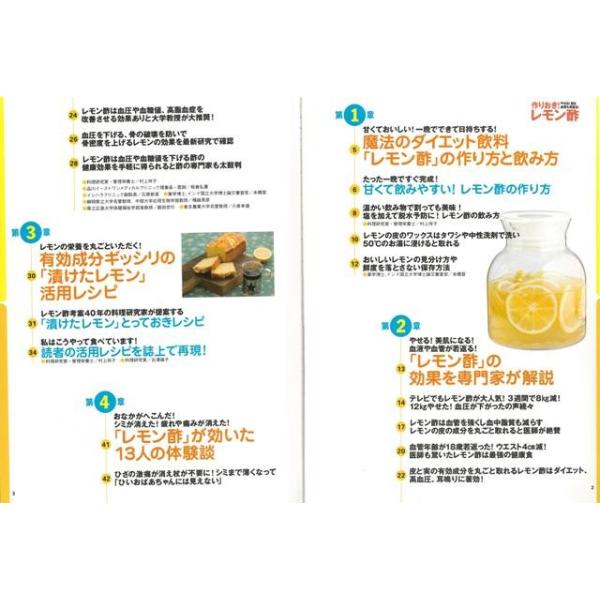 大人気「レモン酢」のすべてがわかるムック第二弾。栄養成分たっぷりの「漬けたレモン」の活用レシピや体験談が満載1晩でできて、作りおきできる人気のダイエットドリンク!・一晩で手軽にできて、おいしい。・日持ちするので、作りおきができる。・ダイエットや血管の若返り、美肌に痛み取りと、効果が非常に多彩。