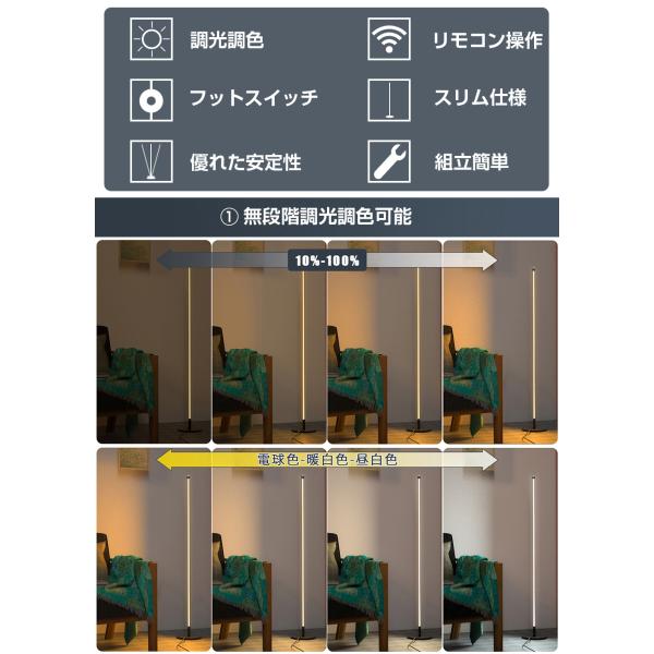 フロアライト スタンドライト LEDフロアランプ フロアスタンド 間接照明 調光調色 寝室 ベッドサイド 癒やし おしゃれ 北欧 リモコン付 タッチスイッチ制御