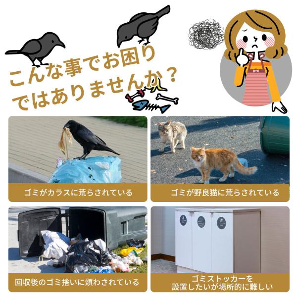 ・隙間からカラスや猫などの侵入を防ぐために、フタにはダブルファスナーを採用しています。また、蓋にマジックテープが付き、カラスと野良猫が簡単にファスナーを開けられないようにすることです。