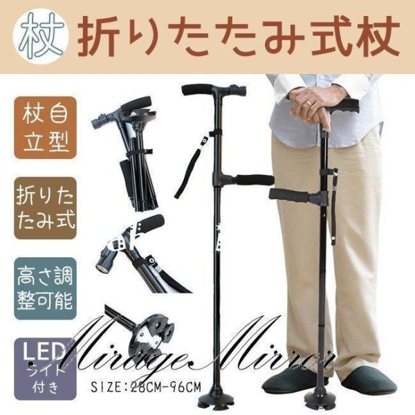 杖 自立式 父の日 折りたたみ 軽量 伸縮式 5段階調節 男性 女性 ステッキ 4点杖 360°回転式 ダブルハンドル