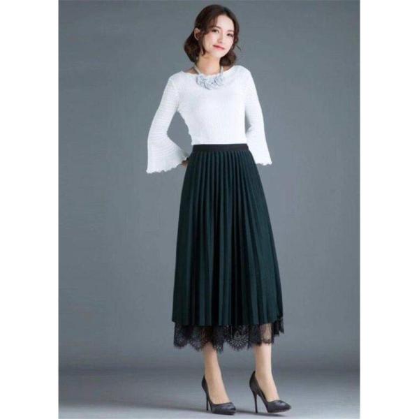 キーワード爆売中 チュールスカート 2WAY 重ね着 Aライン 着痩せ 体型カバー ウェストゴム ボトムス 裾レーススカート ロングスカート プリーツスカート