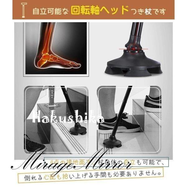 杖 自立式 父の日 折りたたみ 軽量 伸縮式 5段階調節 男性 女性 ステッキ 4点杖 360°回転式 ダブルハンドル