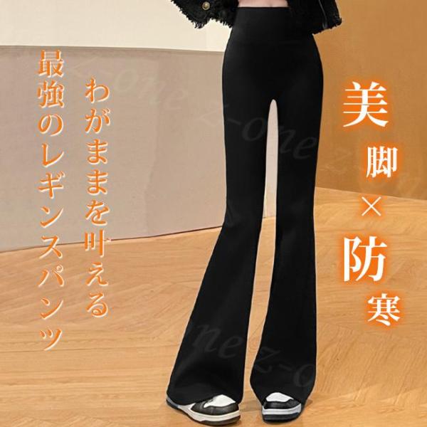 レディース ストレッチ レギンス ボトムス 美脚 防寒 脚長効果 フレア フレアパンツ