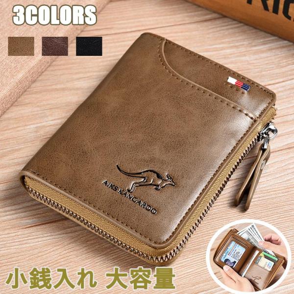 財布メンズ父の日二つ折りPU レザー ラウンドファスナー 復古 ショートウォレット大容量カド入れお札入れ軽量コンパクトファッション小物財布 プレゼント