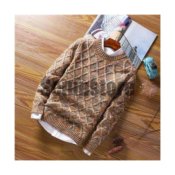 ニットセーター 体型カバー 丸首 長袖 メンズファション 個性的 長袖セーターセーター メンズ 新作 秋冬