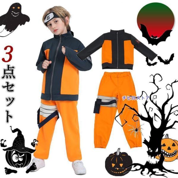 コスプレ 仮装 子供 可愛い 3点セット うずまきナルト 男の子うずまきナルト日系アニメキャラクターコスプレ仮装コス衣装
