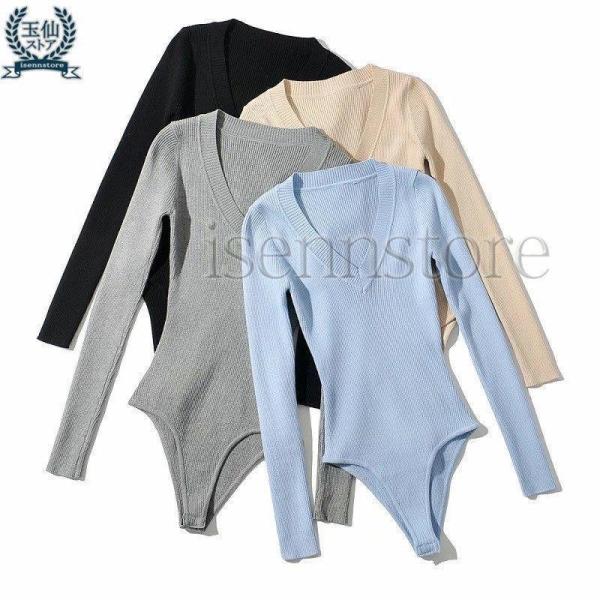 ス tシャツ 長袖ニット セーター インナー シンプル 無地 Vネック 長袖 レディース 大人 女性 ス タイト レオタード ス オールインワン つなぎ インナー ストレッチ伸縮 体型カバー 20代30代 40代 50代 フィット ボディブリファー シンプル 着回し ベーシック