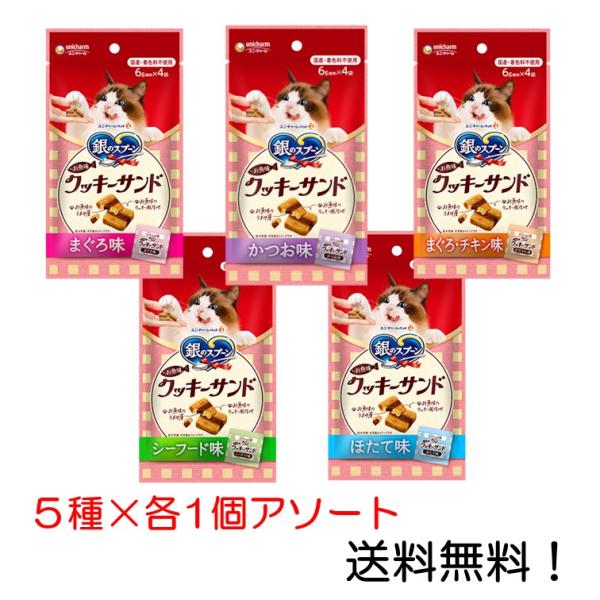 銀のスプーン 三ツ星グルメおやつ お魚クッキーサンド アソート5種各1個セット( まぐろ味・まぐろチキン味・かつお味・シーフード味・ほたて味)