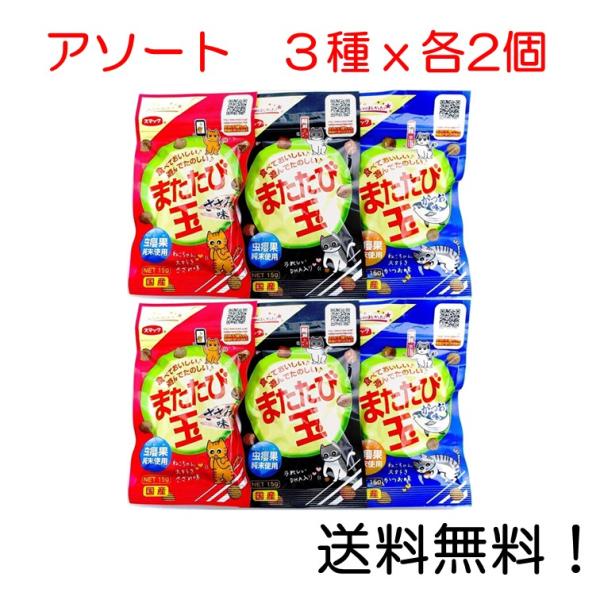スマック またたび玉 15g + ささみ味 15g + かつお味 15g (3種類(各2個))