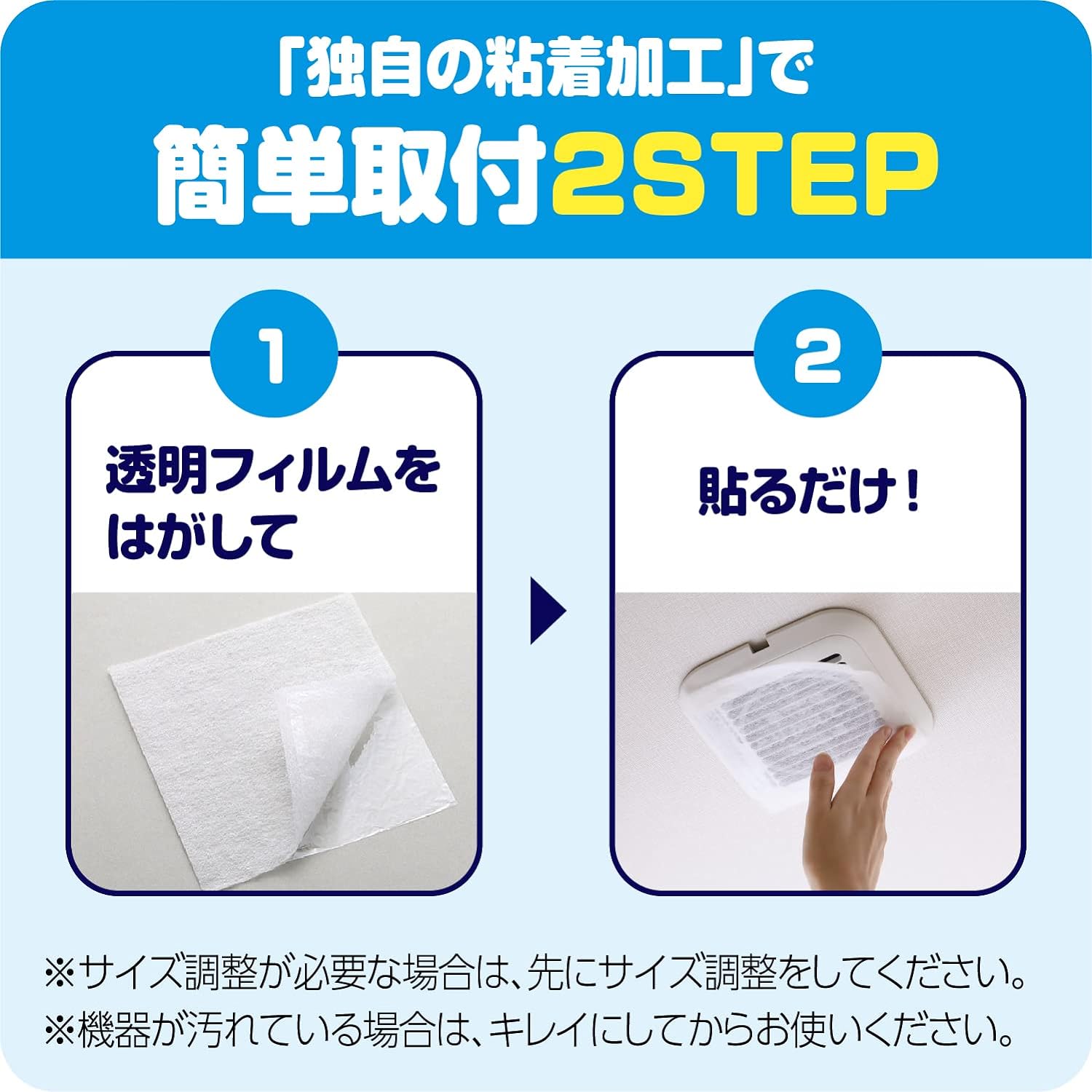 パッと貼るだけで換気扇のホコリ汚れを防ぎます。