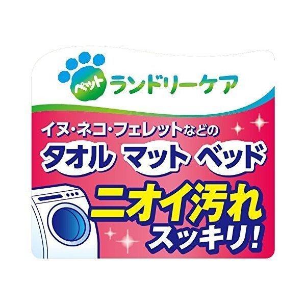 ペットのニオイ汚れをスッキリ落とすペットの布製品専用の洗たく洗剤です。タオル・マット・ベッドなどのニオイや毛をスッキリ落とす液体コンパクト洗剤です。漂白剤でも落ちにくいペットのニオイ汚れを落とす専用洗浄成分を配合しています。植物生まれの除菌成分を配合しており、洗たく物をペットが舐めても安心です。すすぎも1回でOKです。グリーンフローラルのマイルドな香り。