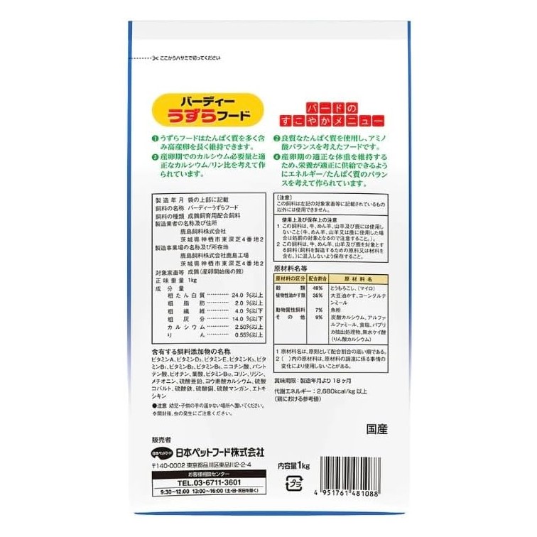 日本ペットフード バーディー うずらフード 国産 1kg