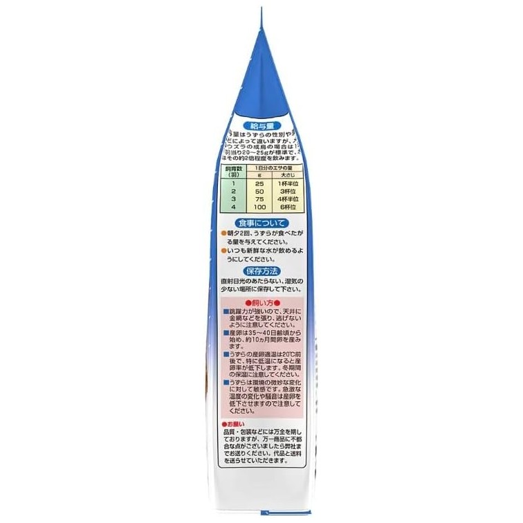 産卵開始後のウズラ用すこやかメニュー。