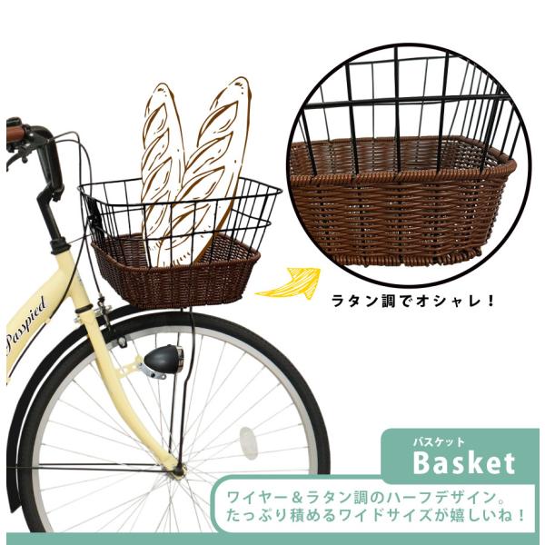 ●カゴ付きで便利!さらにリアキャリア搭載!買い物や通勤などに!