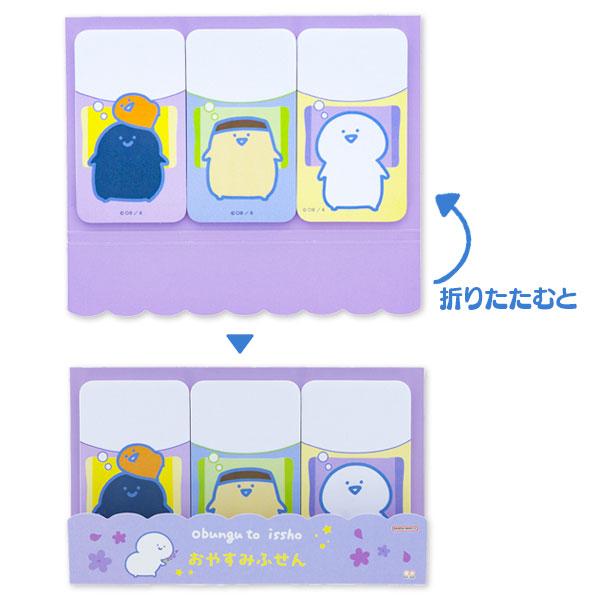 【商品詳細】人気キャラクター「お文具といっしょ」から、癒し系デザインのおやすみふせんが登場!メモや伝言、スケジュール管理などにぴったり。デスクや手帳に貼ると、ゆるかわな世界観が広がります♪