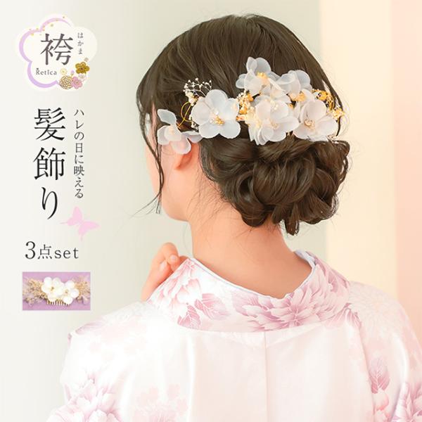 袴 髪飾り かすみ草付き ドライフラワー 袴ヘアアクセサリー 3点セット 袴用小物 成人式 卒業式 七五三