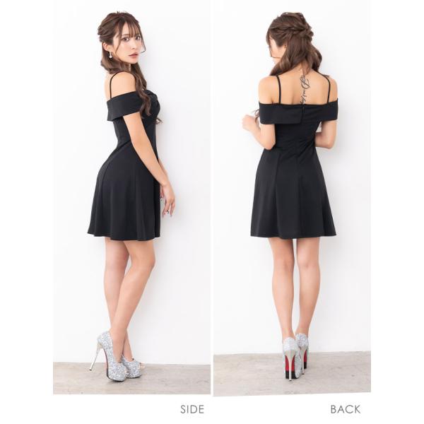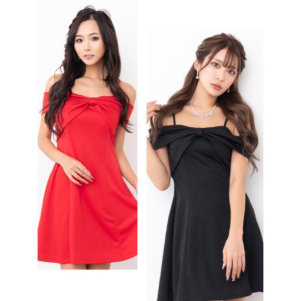キャバドレス キャバ ドレス キャミソール 肩あき リボンデザイン ワンカラー フレア ミニドレス プチプラ 安い 激安 激安ドレス