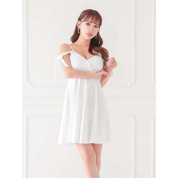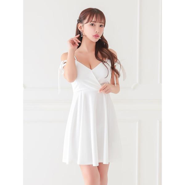 キャバドレス キャバ ドレス Aライン ミニドレス オフショルダー 大きいサイズ 背中魅せ ストレッチ 肩出し リボンショルダー ワンカラー プチプラ 激安ドレス