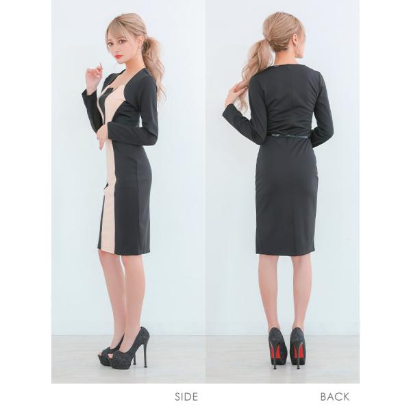 キャバドレス キャバ ドレス 大きいサイズ 長袖 袖あり キャバ嬢ドレス 膝丈 ミニ タイト ベルト バイカラー プチプラ 安い 激安 激安ドレス