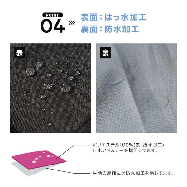 ポリエステル100%(表面:はっ水加工、裏面:防水加工)