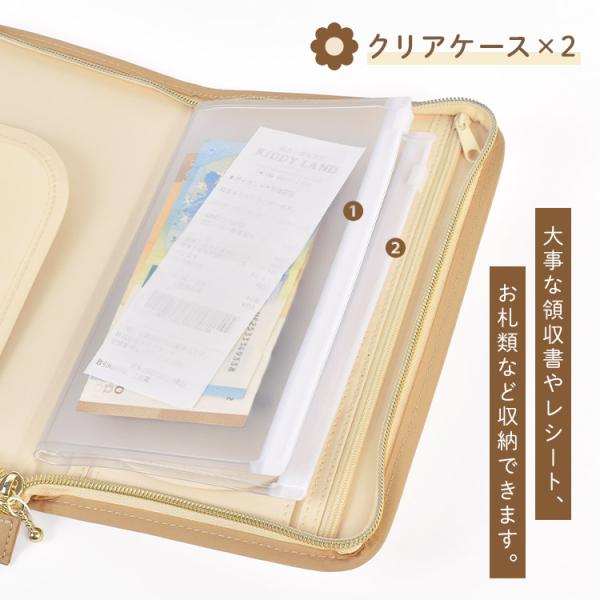 通帳や母子手帳、お薬手帳、保険証・診察券などの通院セットをまとめて管理できるので、バッグの中もすっきり整理。