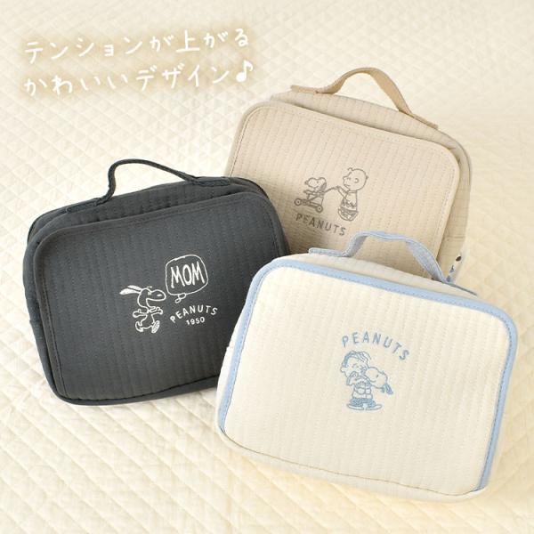 スヌーピー ポーチ 大きめ おむつポーチ おしり拭き 取り出し口 内蔵 着替えポーチ 赤ちゃん 哺乳瓶 持ち運び ベビーグッズ ベビー用品