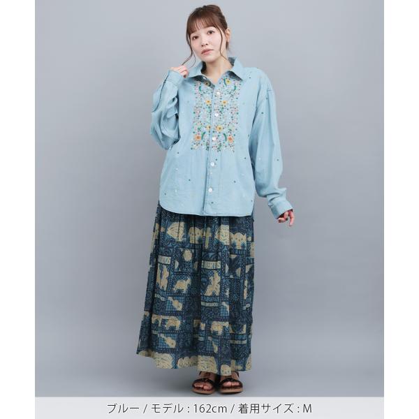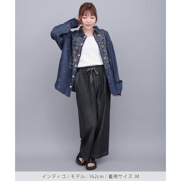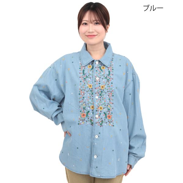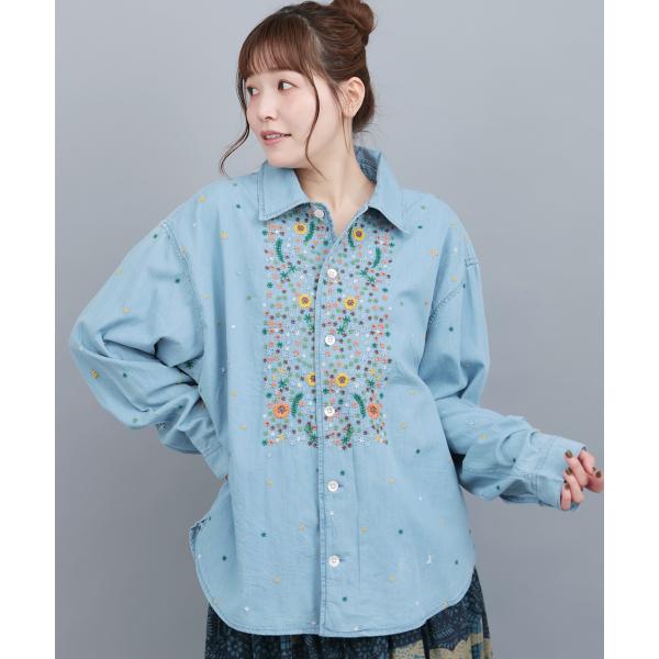 go slow caravan ライトデニムパネル刺繍シャツ【WEB限定】 / シャツ トップス ライトアウター 羽織り ハオリ レディース 男女兼用 ユニセックス 長袖 ps