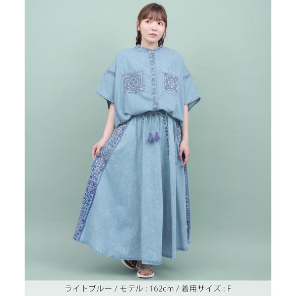 Rico ライトデニムメヒコタイル刺繍シャツ / シャツ ブラウス トップス レディース 春 夏 ゆったり ドルマン 羽織 インディゴ 大人 カジュアル ハオリ
