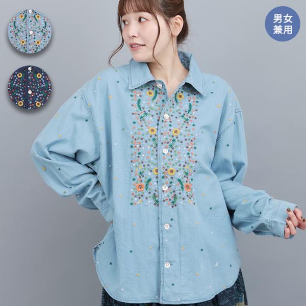 go slow caravan ライトデニムパネル刺繍シャツ【WEB限定】 / シャツ トップス ライトアウター 羽織り ハオリ レディース 男女兼用 ユニセックス 長袖 ps