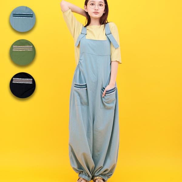 Orale! サルエル風サロペットパンツ / オーバーオール サロペットパンツ レディース 春 夏 ロング シンプル 無地 ポケット エスニック チチカカ TITICACA