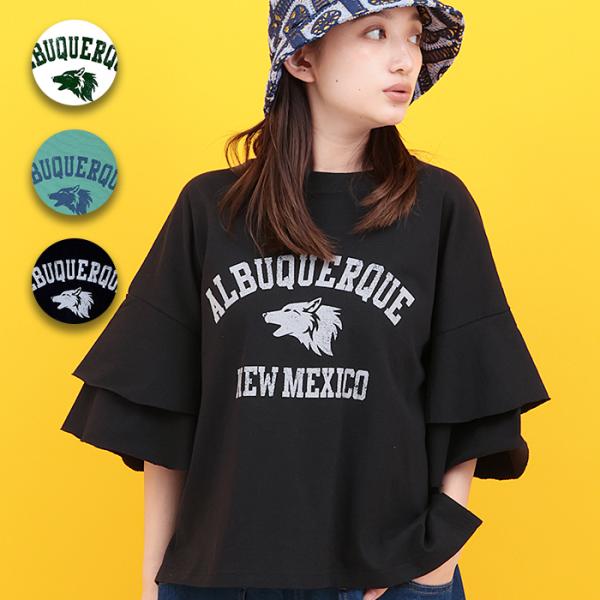 Orale! ラッフルスリーブTシャツ / Tシャツ レディース 五分袖 半袖 ドロップショルダー オーバーサイズ 袖 カレッジロゴ エスニック チチカカ TITICACA