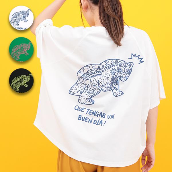 Orale! アレブリヘプリントドルマンTシャツ / Tシャツ 接触冷感 ひんやり UVカット バックプリント ドルマンスリーブ 半袖 夏 エスニック チチカカ TITICACA