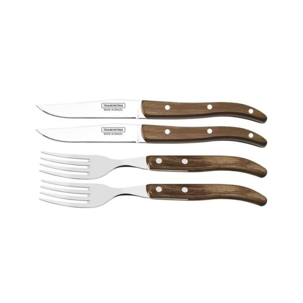 トラモンティーナ 木柄ステーキナイフ テーブルフォーク 2本ずつ 4本セット ポリウッド シュラスコ 木箱入りギフト TRAMONTINA