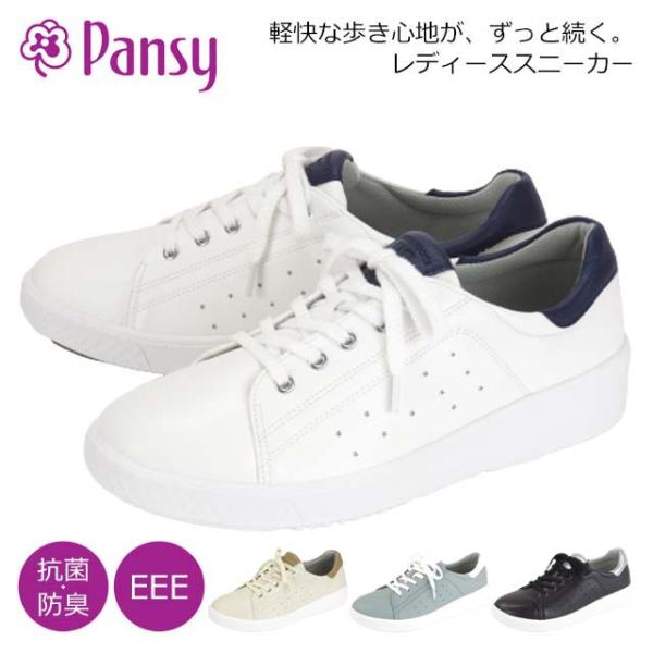 パンジー 靴 スニーカー レディース Pansy Sports PS1391 レースアップ ヒモ靴 履きやすい 軽い EEE 3E 幅広 外反母趾 ミセス 旅行 主婦 定番
