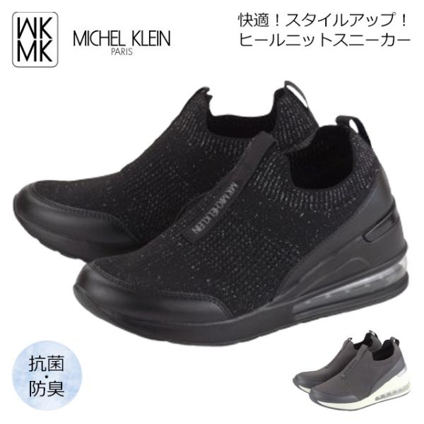 ミッシェルクラン スニーカー MK-445 MK MICHEL KLEIN レディース スリッポン ウェッジソール 厚底 舟底 ヒモなし ストレッチ ニット 抗菌 防臭