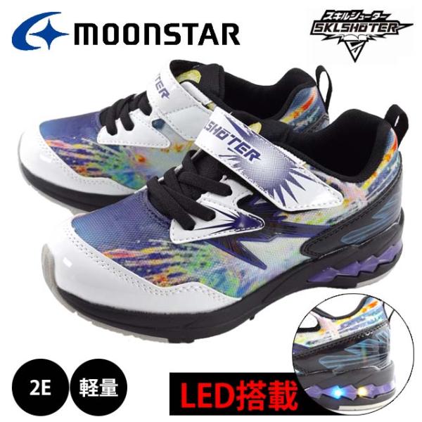 MOONSTAR SKLSHOTER SK0069LE キッズ ジュニア スニーカー シューズ ズック 男の子 EE マジックテープ 洗えるインソール 小学生 LED搭載 光る