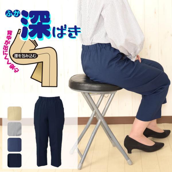 [82288-55] 背中が出にくいパンツ 深ばきパンツ シニアファッション レディース パンツ ズボン 春夏 ウエストゴム 総ゴム 股下55cm 70代 80代 90代 シニア