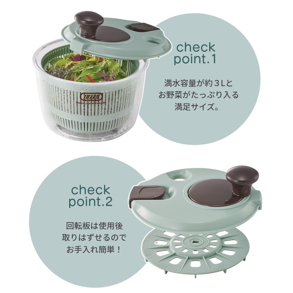 Toffy トフィサラダ ボウル ザル ざる 手動 回転式 生野菜 洗いやすい 簡単