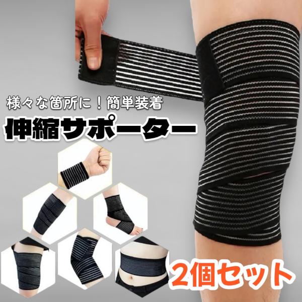 サポーター テーピング バンテージ マジックテープ 黒 40cm 70cm 90cm 2枚 伸縮 バンド リストラップ 固定 怪我防止 手首 足首 野球 スポーツ トレーニング