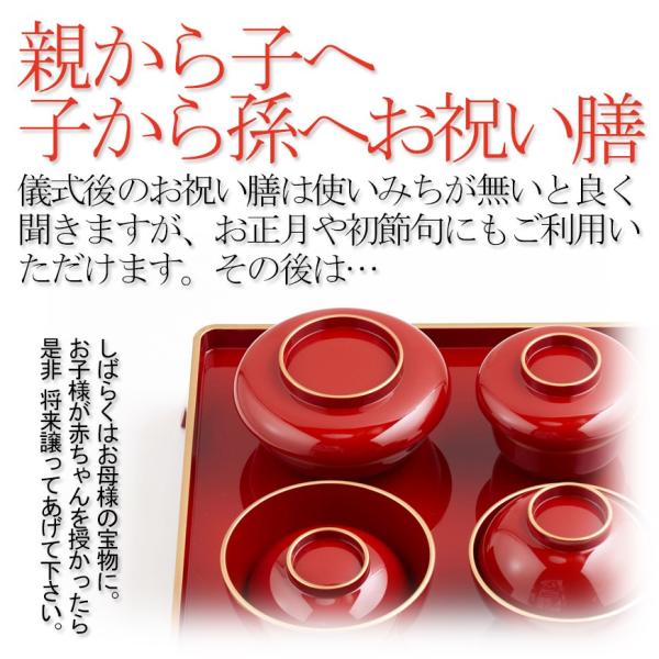 お赤飯とお吸い物を温めて、器によそえばすぐにお食い初めができます。