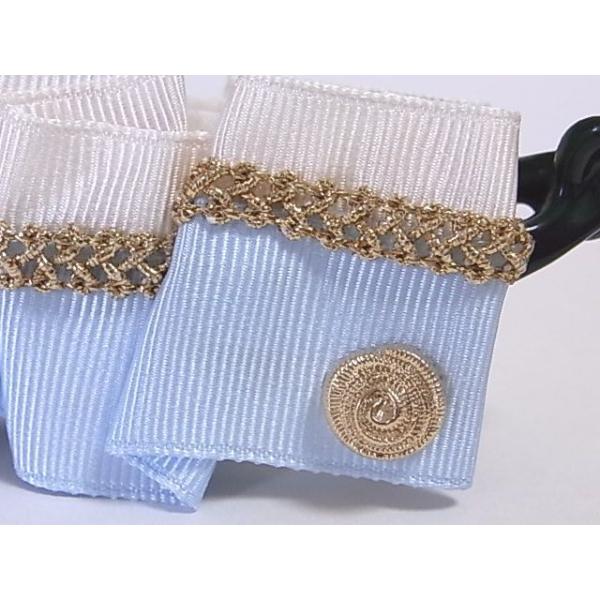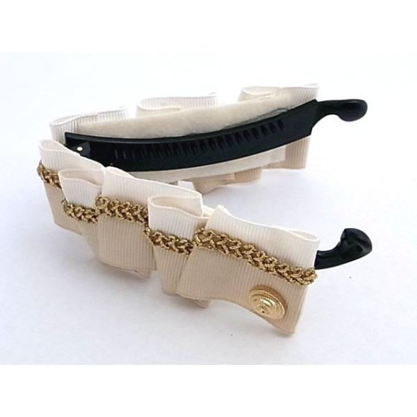 チェーン風のゴールドリボンと金色のボタンパーツで細部にわたっておしゃれにこだわったハイクラスな一品です。